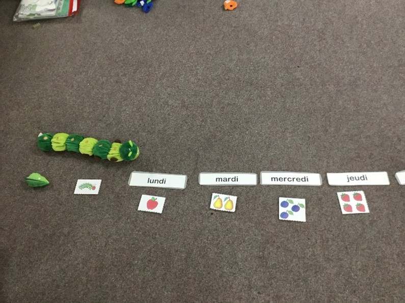 The children read the story of The Hungry Caterpillar then made paper plate life cycles. On Languages Day the children read La Chenille Affaimee (The Hungry Caterpillar in French) and practised their numbers, colours and days of the week which they had been learning in French.