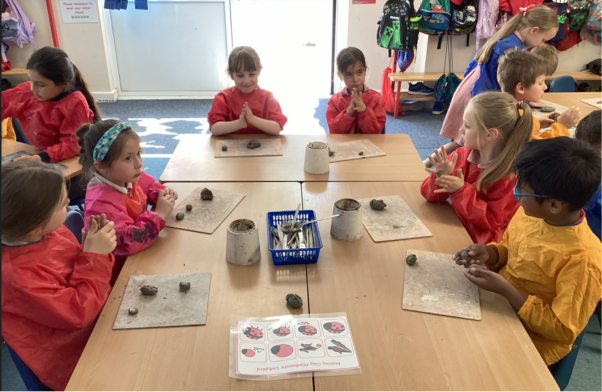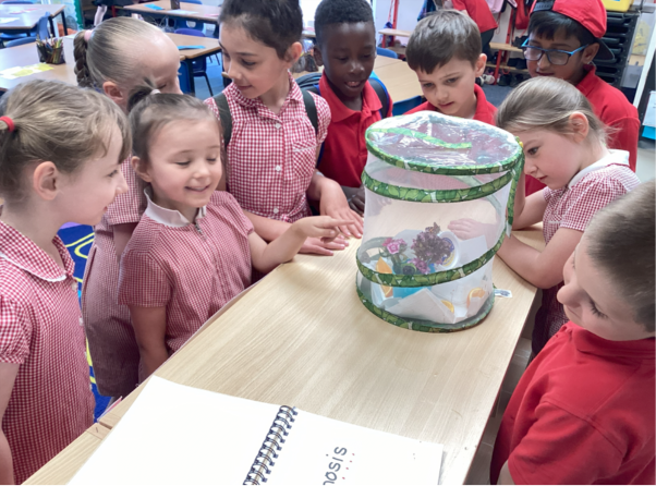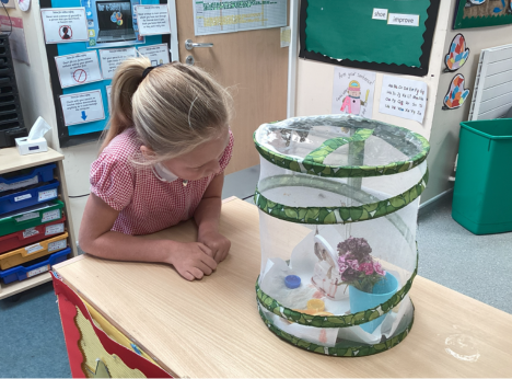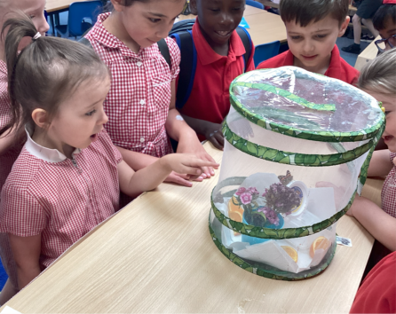 In science, we have been learning about mini-beasts and their micro-habitats. We enjoyed using our scientific skills of observation to watch caterpillars change into butterflies and our broad beans grow. We have also been exploring our outside environment and identifying wild flowers and birds.