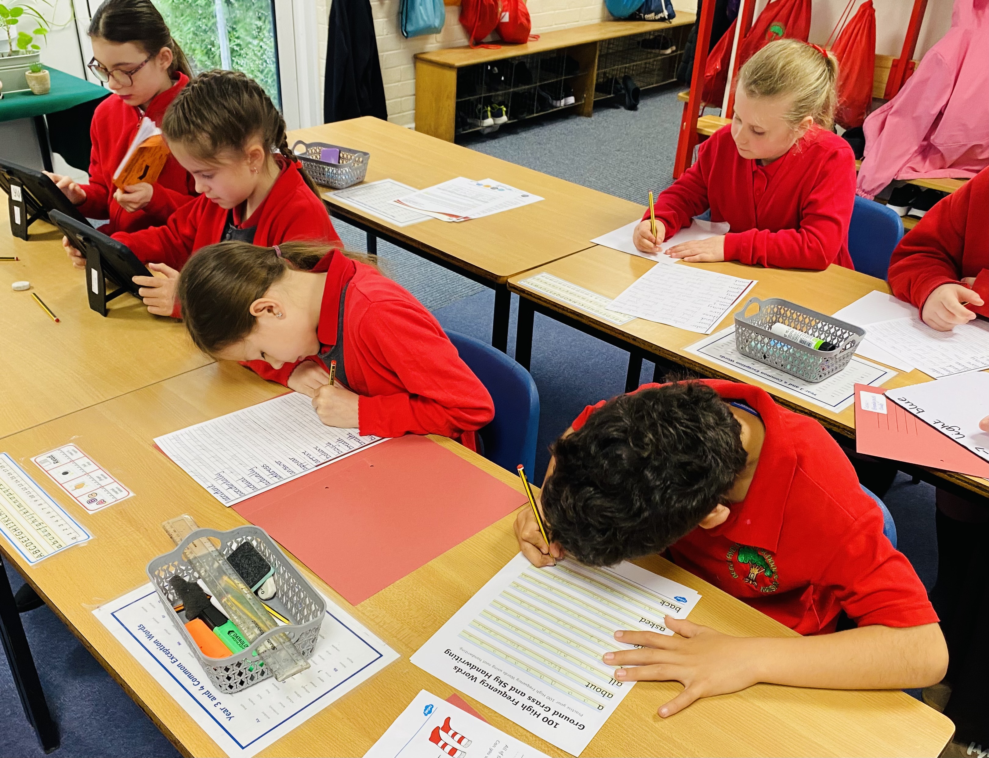 Years 3-6 go with Miss Freeman, Year 4 teacher, to work on foundational skills that they may need to focus on - times tables, handwriting, spelling, maths..., or to focus on stretch and challenge tasks. Each child has a bespoke programme depending on their needs.